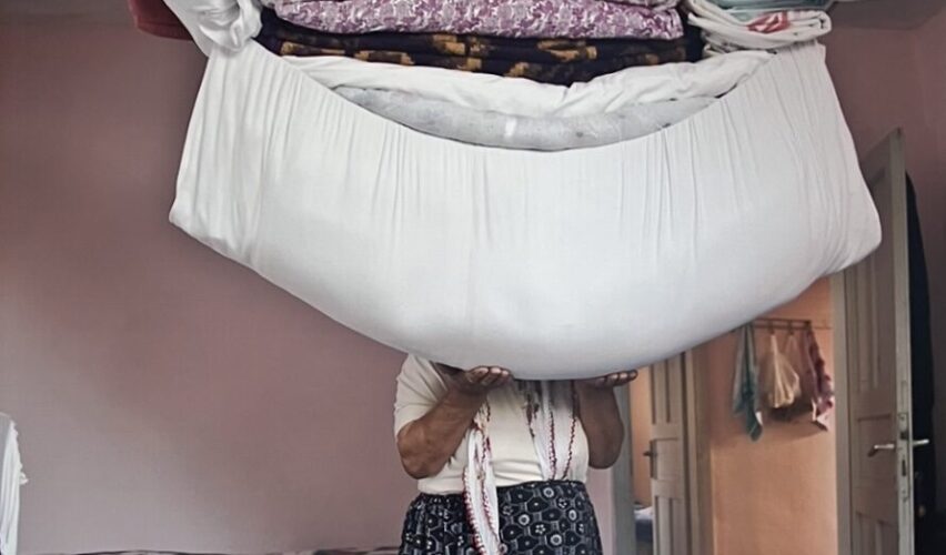 Sırtladığı şey sadece çarşaf değil, aynı zamanda kadın olmanın yükü. Bu görüntü bana şunu hatırlattı: Kadınlar çoğu zaman kendileri olarak değil, ne işe yaradıkları kadar varlar. Ve çoğu zaman da kadın emeği, görünmeden geçip gidiyor. Değer görmeden, teşekkür edilmeden, sorgulanmadan.