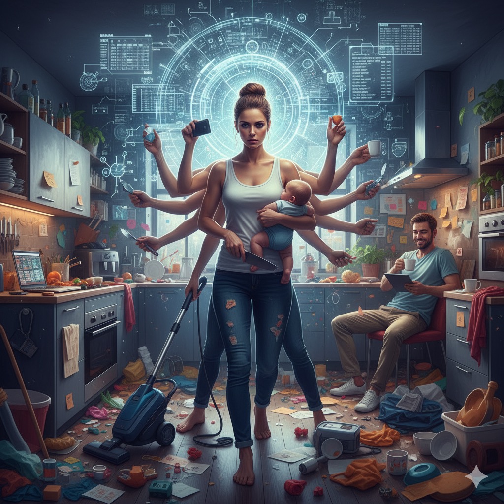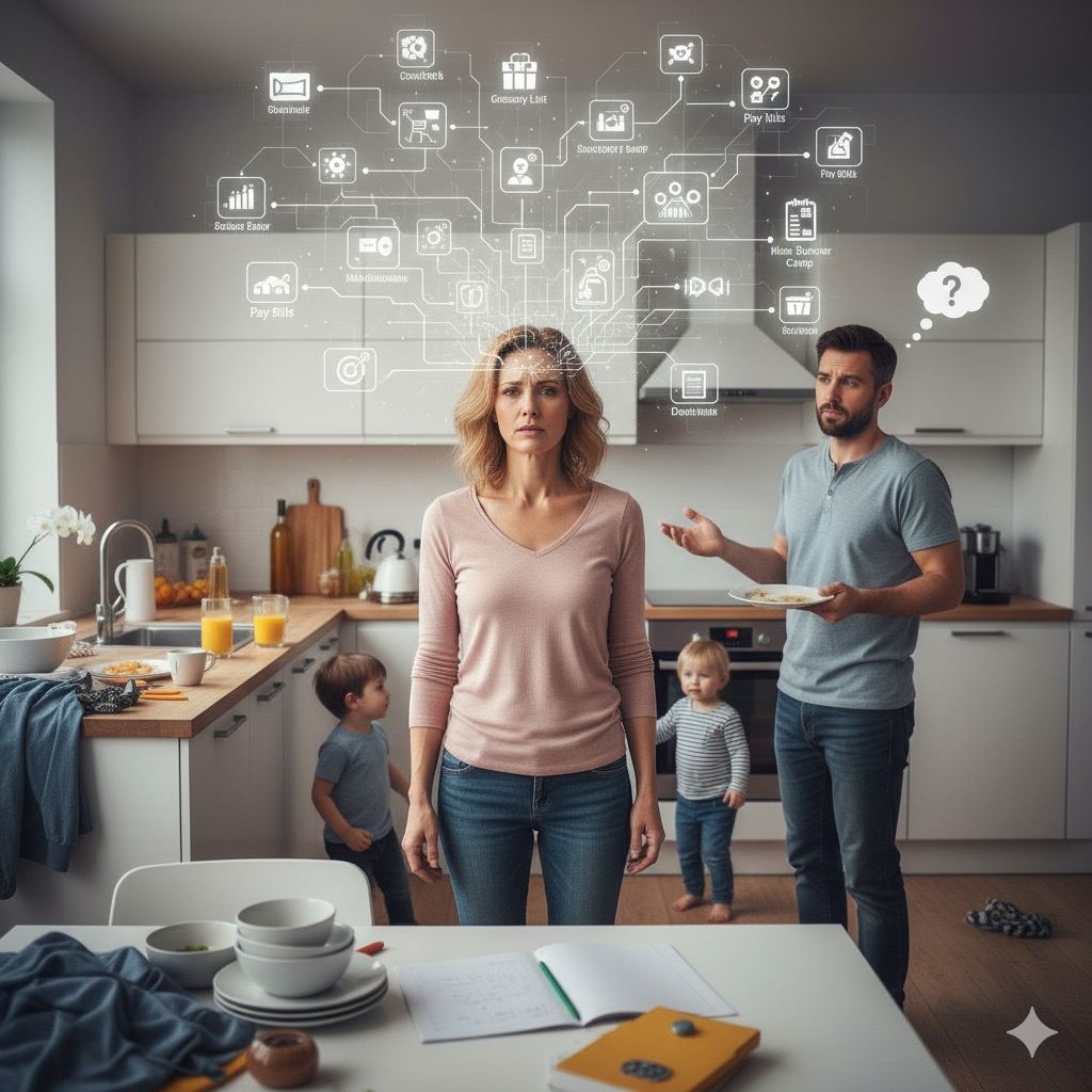Kadınların ev içindeki görünmez emeği, sadece zaman ve enerji kaybı olmanın ötesinde bilişsel bir kaynak tükenişi olarak yeniden tanımlanıyor. İşte bu noktada Zihinsel Yük (The Mental Load) kavramı devreye giriyor. Zihinsel yük, bir hanenin veya ailenin sürekli ve sorunsuz işlemesi için gereken planlama, organizasyon, öngörme ve hatırlama gibi tüm görünmez bilişsel görevlerin toplamına denir.